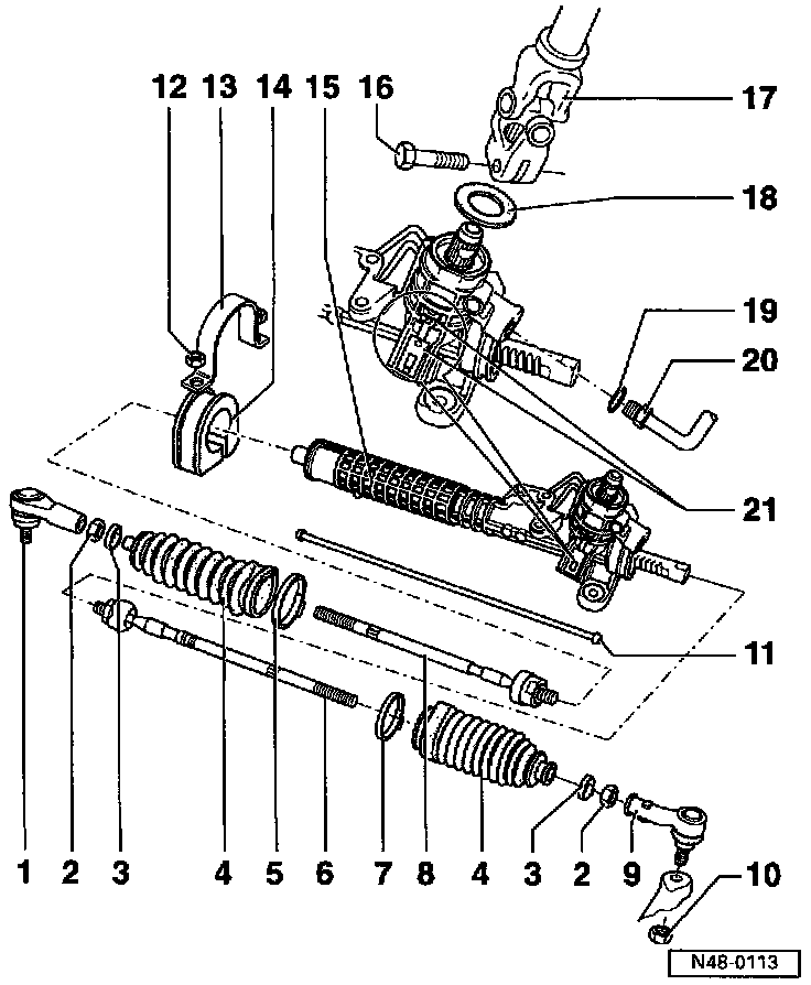 Use only steering gear grease, Part No. AOF 063 000 04, to grease steering rack.