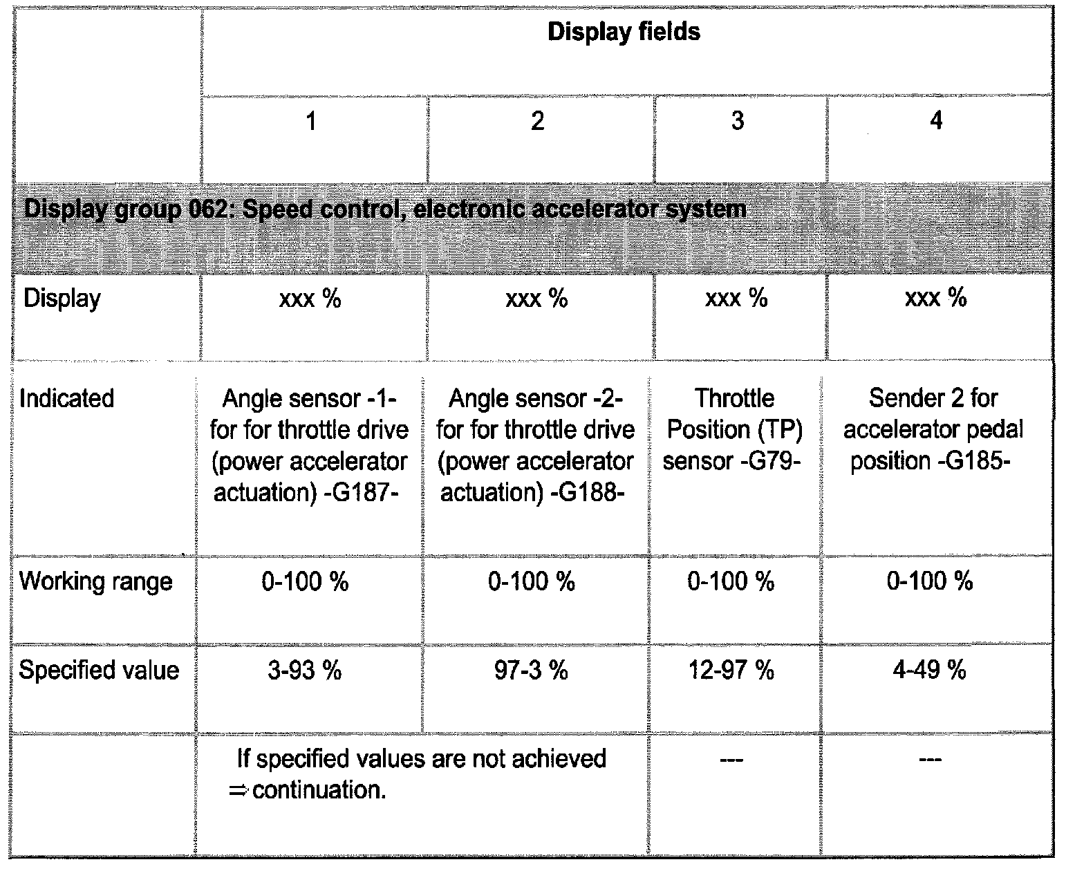 - The display in display field 1 rises and the display in display field 2 falls because the potentiometers (angle sensors) in the throttle valve control modules run in opposite directions.
