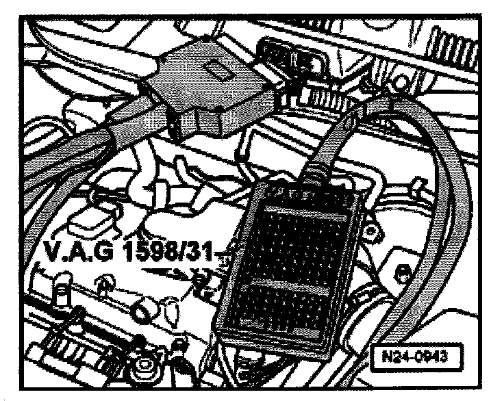 - Connect VAG1598/31 test box to Engine Control Module (ECM) wiring harness. Engine Control Module (ECM) is not connected by this action.