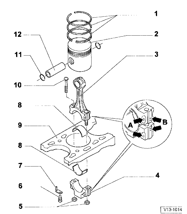 ^ If difficult to remove, heat piston to 60°C (140°F) Remove and install using VW 222a