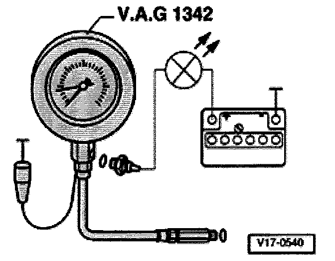 - Connect V.A.G 1527 B Voltage tester between battery Positive and oil pressure switch using jumper wires from VW 1594 adaptor kit.