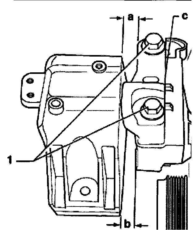 - Attach engine bracket T10012 using fastening nut and screw M10 X 25/ 8.8 with approx.