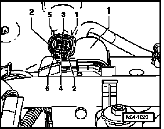 - Disconnect 6-pin connector -2- at the throttle valve control module -1-.