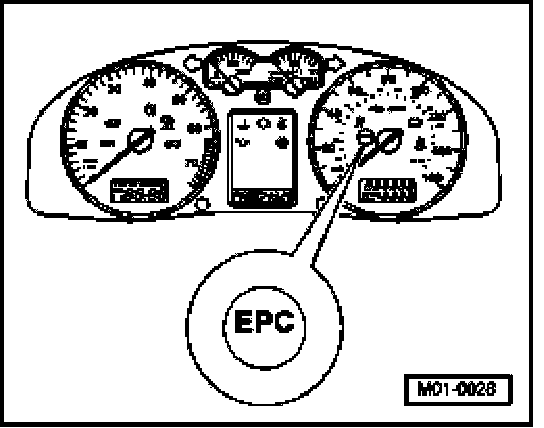 If malfunctions are recognized in the E-gas system during operation of the engine, the Engine Control Module (ECM) switches on the EPC warning lamp. (These malfunctions are listed in the DTC table). An entry is made in DTC memory at the same time.
