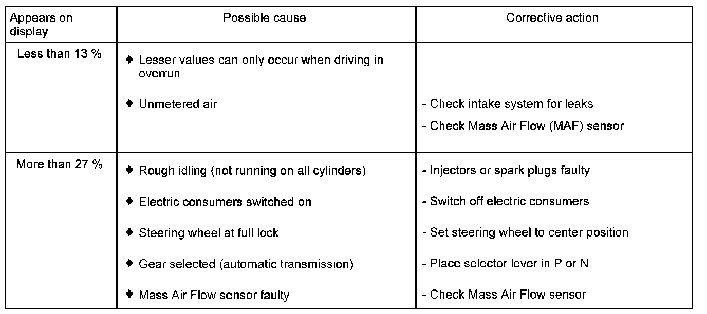 Evaluating display group 10, display zone 2 - Engine load