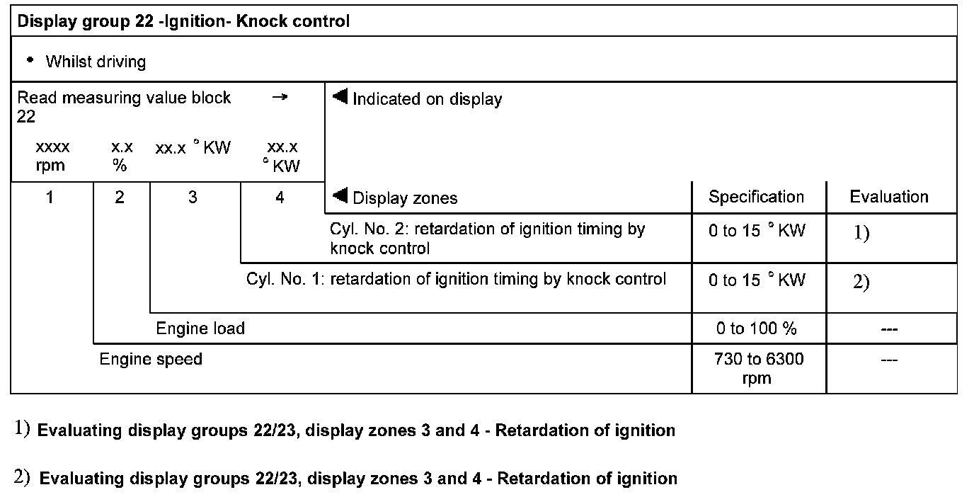 Display group 22 - Ignition- Knock control