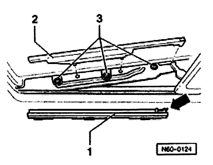 - Unclip lower trim -1- in rear area (arrow), slide forward and remove from roof frame.