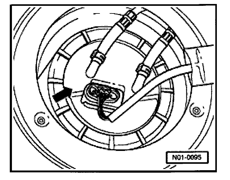 Located in fuel tank on fuel delivery unit -arrow-.