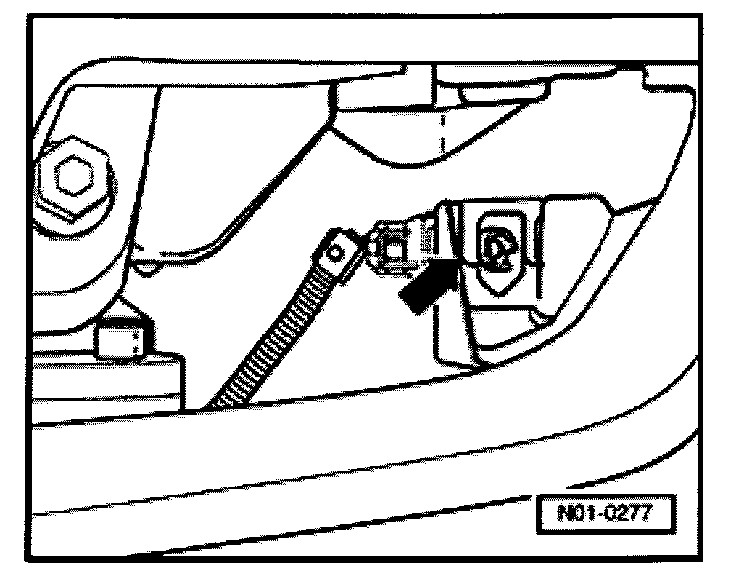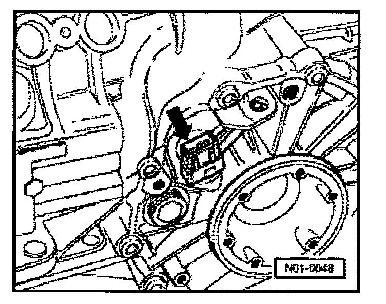 Sensor -arrow- located near left-hand drive shaft flange on manual and automatic transmission vehicles.