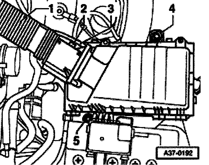 - Remove complete air cleaner housing by removing bolts -4- and -5-.