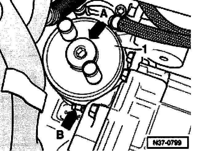 - Tighten hex head bolt -arrow A- to 40 Nm.
