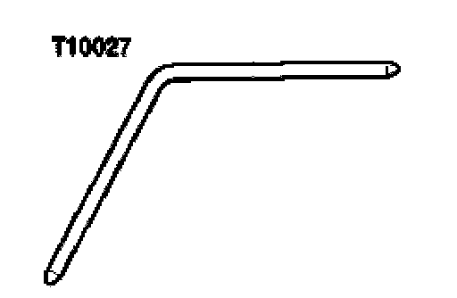 ^ Pull pin T10027 out of holes -A- and -B-.