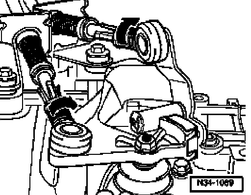 ^ If shift mechanism is correctly adjusted, locking pin -A- can now be pushed into transmission (direction of arrow) and thus into selector shaft gate (2nd mechanic).