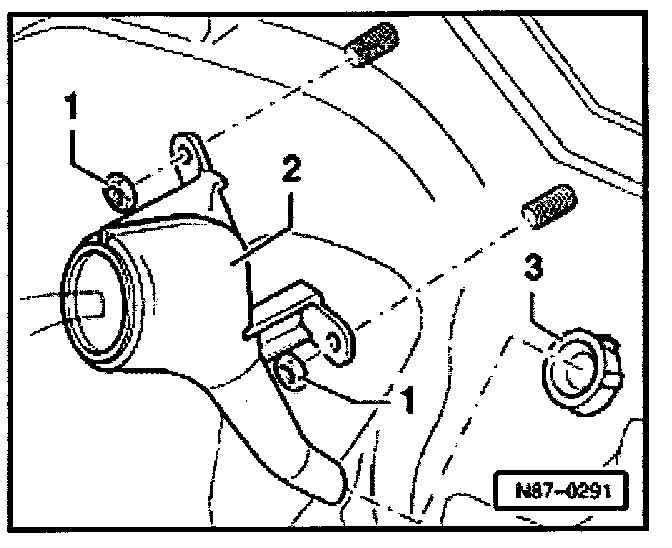 - Remove nuts -1- (2.5 Nm / 23 in lb) and remove guide -2- from bulkhead.