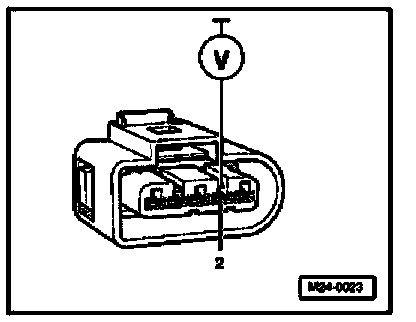 - Connect multimeter to measure voltage at connector terminal 2 and engine ground (GND).
