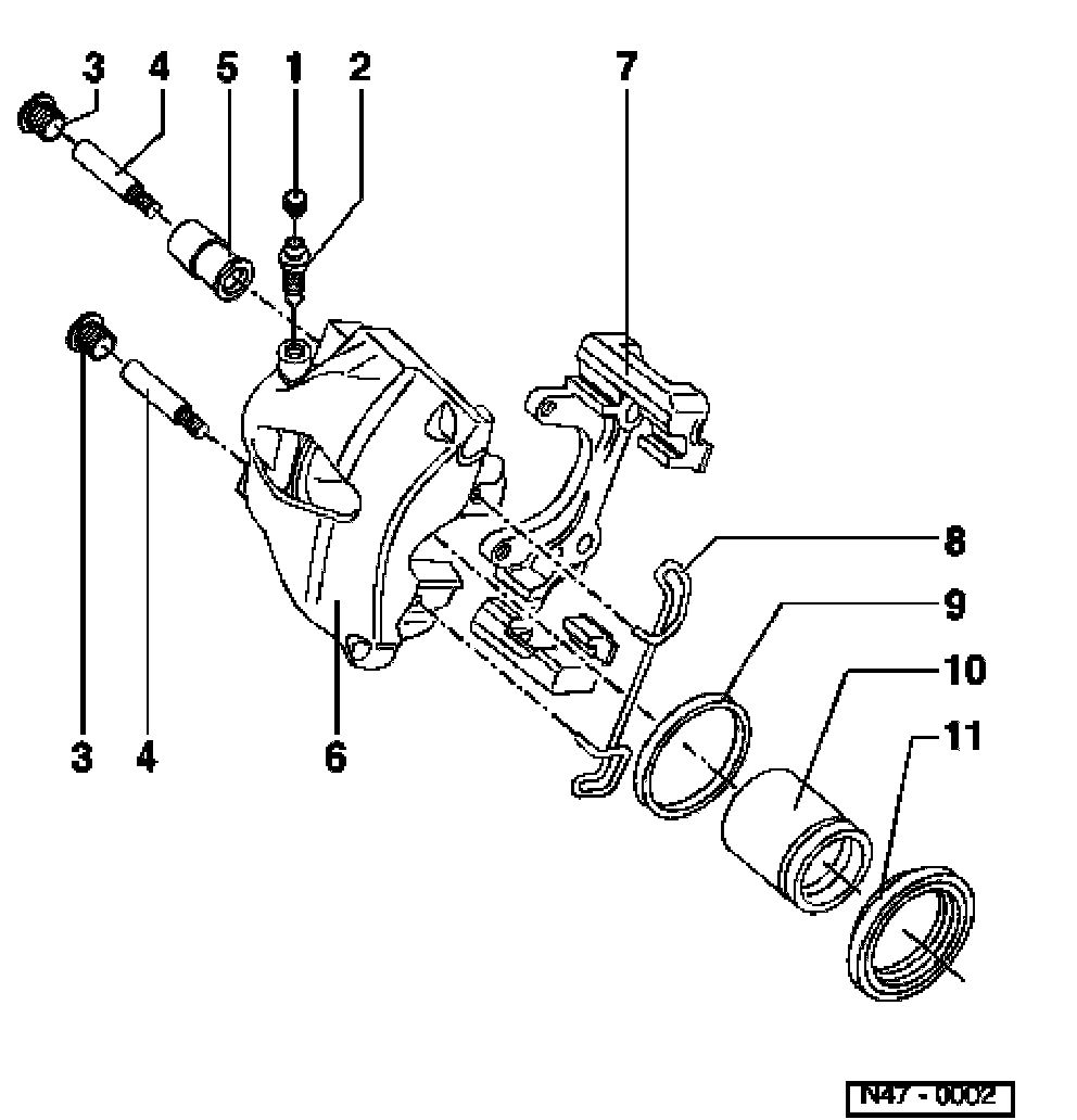 - Apply thin coat of lubricant G 052 150 A2 to brake cylinders, pistons and seals.