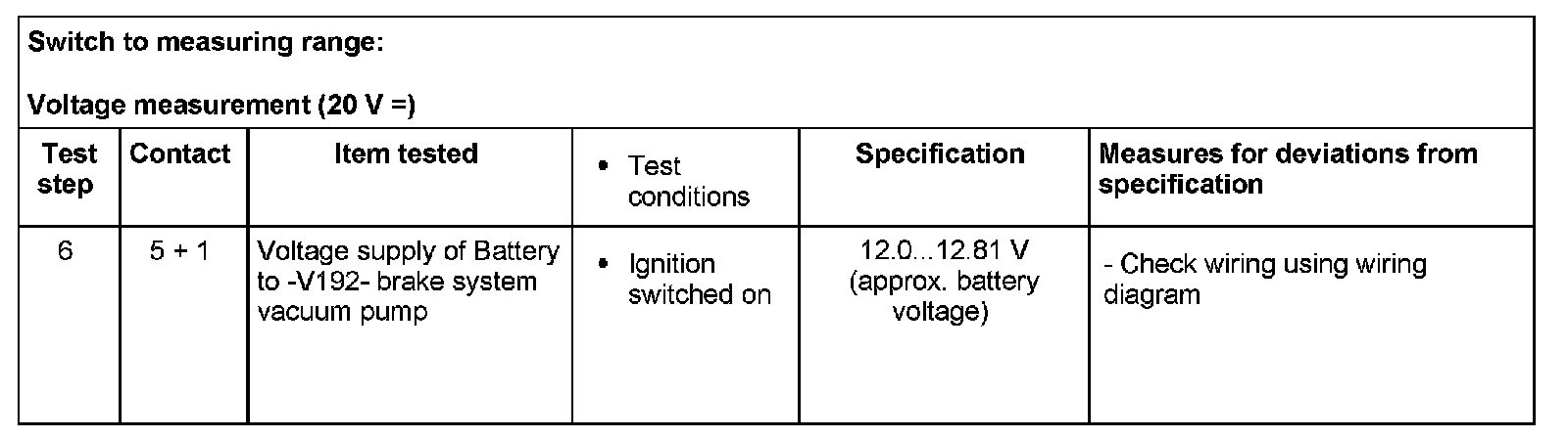- If the readings obtained deviate from the specifications, carry out repair measure in the right-hand part of the table.