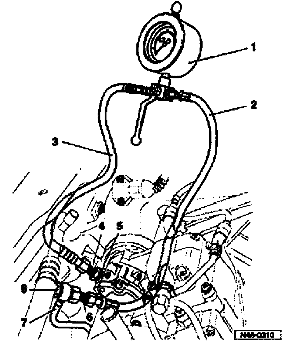 - With engine running at idling speed, close cut-off valve (not longer than 5 seconds) and read off pressure.