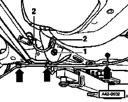 - Remove bolts -1- with vehicle standing on its wheels (raise vehicle until the bolts are accessible).