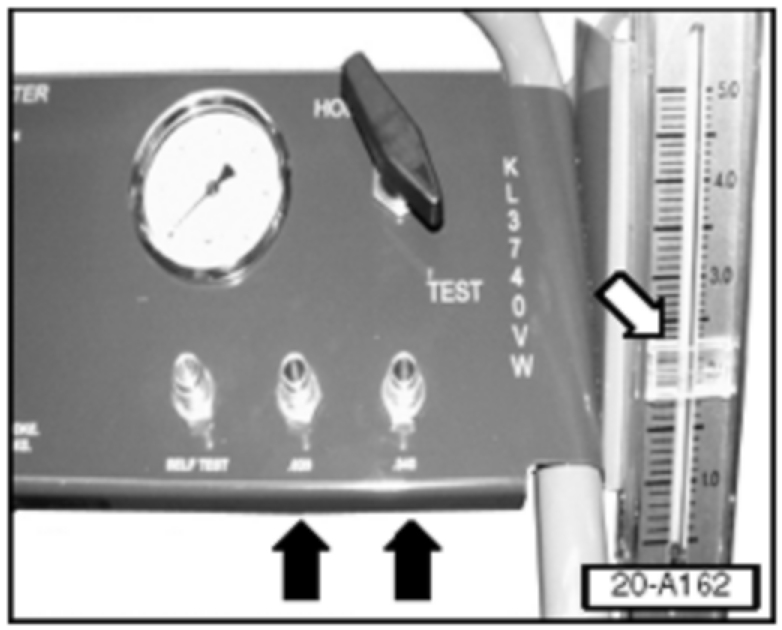 NOTE: Any flow shown on flow meter indicates a leak. Flow below flow meter flag set at vehicle leak standard may indicate a sporadic DTC.