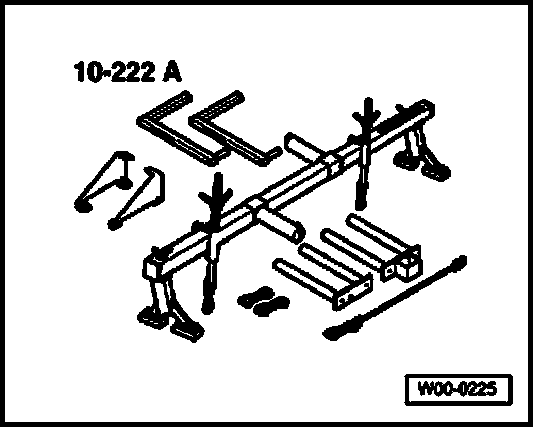 - Position 10-222A engine support bridge with 10-222A/1 brackets as shown and support engine/transmission in this position.