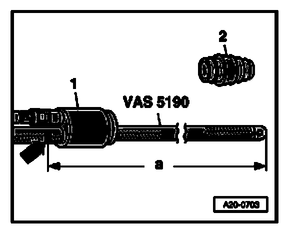 - Pull cone piece -2- from shaft piece -1- of fuel siphoning unit VAS 5190.
