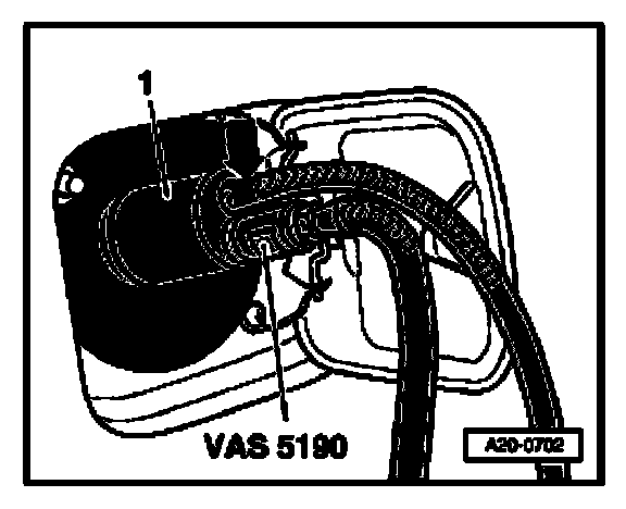 - Screw shaft piece -1- of fuel siphoning unit VAS 5190 on to fuel filler tube of fuel tank.
