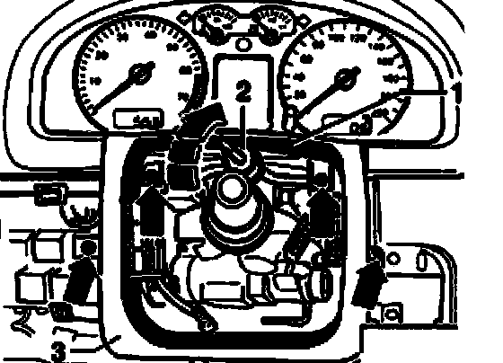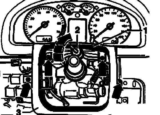 ^ Remove steering column bolts - 1 - and take out steering column.