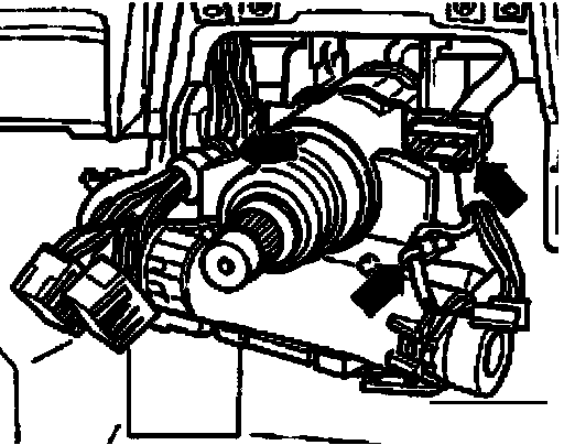 ^ Pull off connectors - arrows - from steering lock housing.