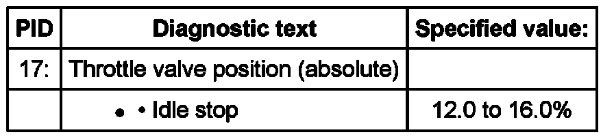 - Check specified value of throttle valve position (absolute) at idle stop: