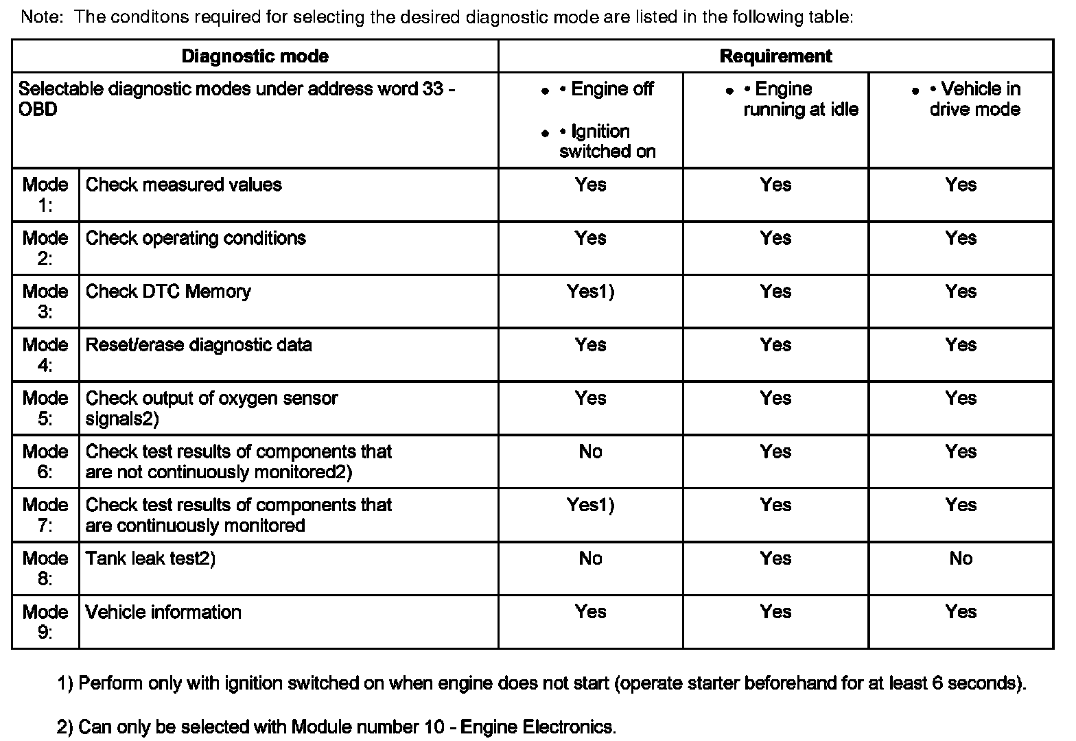 Selectable Diagnostic Modes Under Address Word 33 - OBD