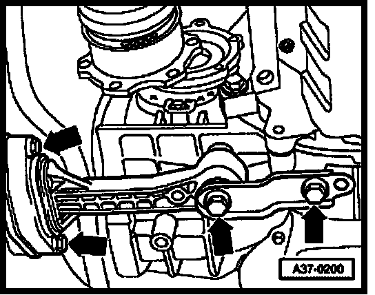 - Remove mounting bolts (arrows) from transmission holder.