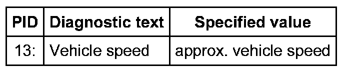 - Select measuring value "PID 13: Vehicle speed".