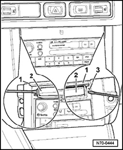 - Using a flat screwdriver, press retaining clips - 3 - on cup holder - 2 - and unclip.