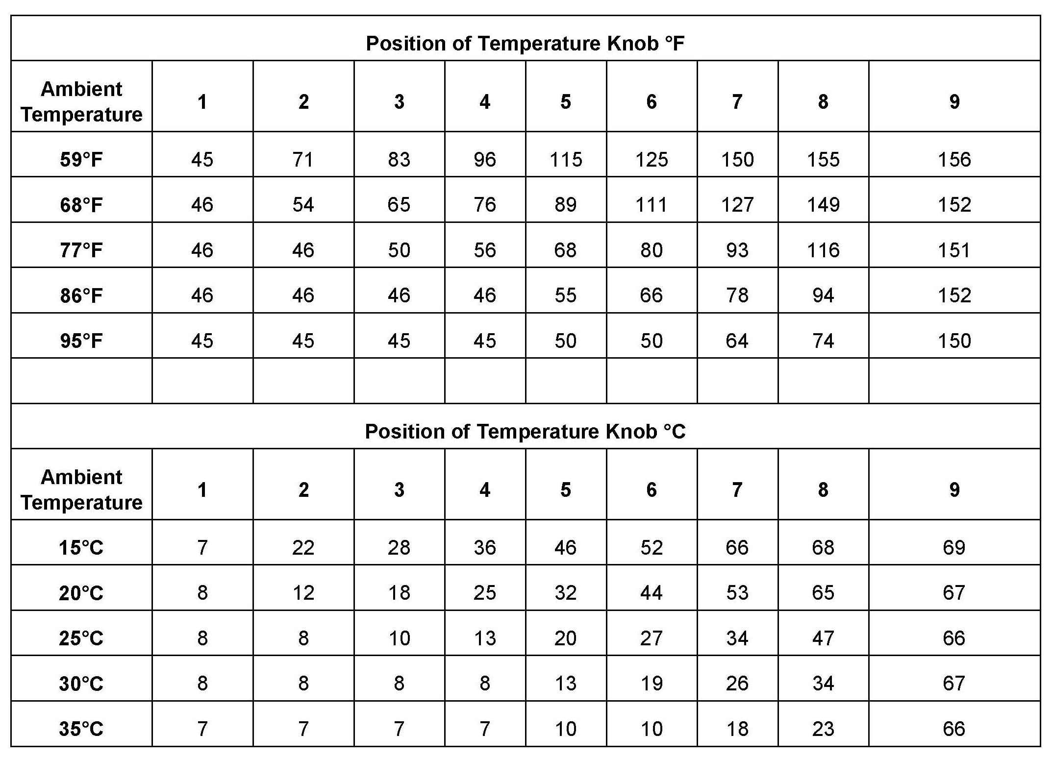 Allow approximately 2 minutes for temperature to reach and maintain the stated temperature as shown on table.