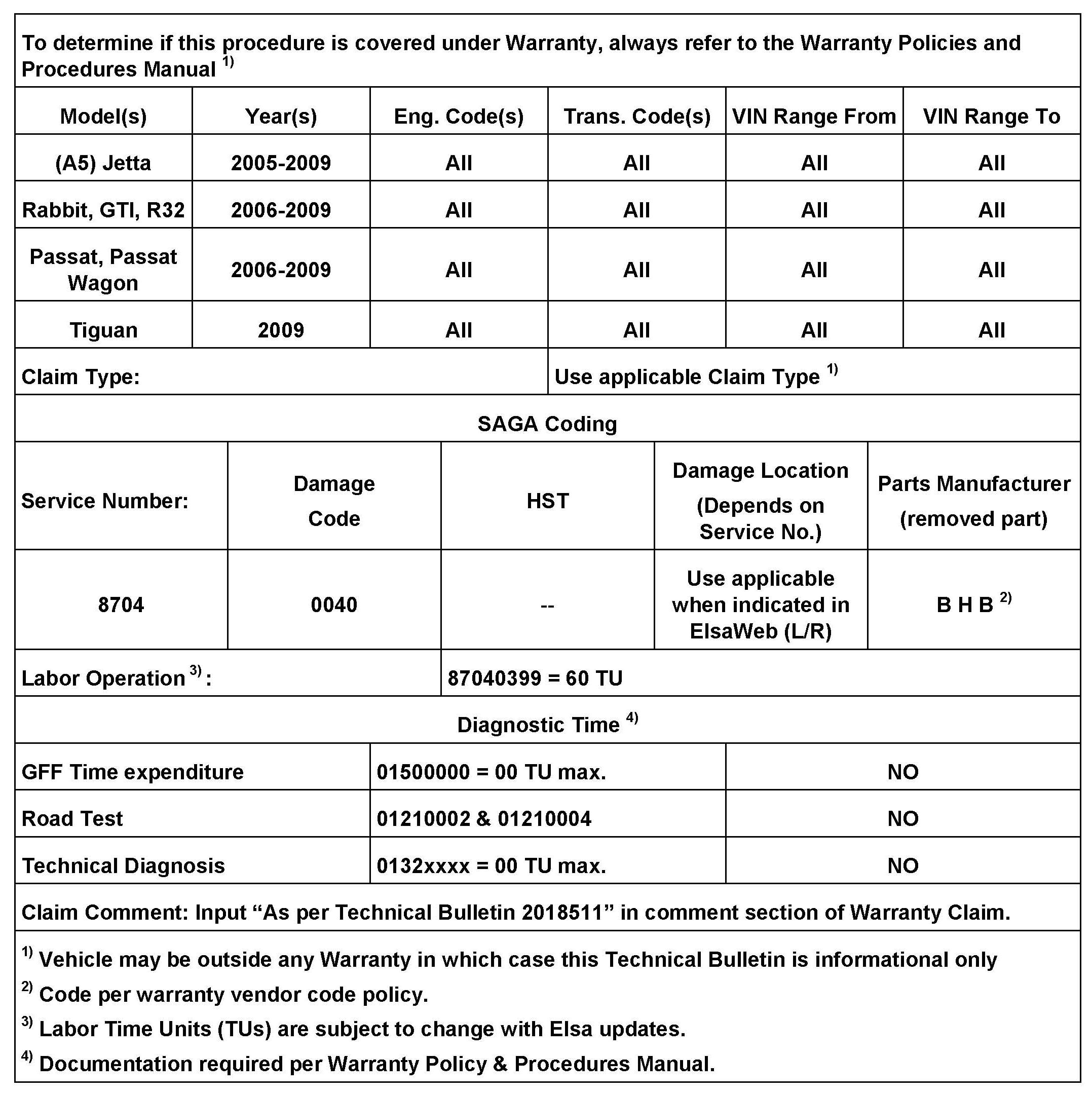 2018511 Supersedes T.B. Group 87 number 08-05 dated Aug. 11, 2008 to update warranty detail.