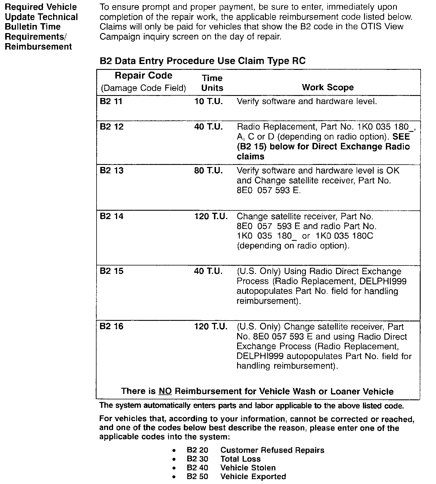 - Order required replacement radio through the Volkswagen Parts Ordering System.