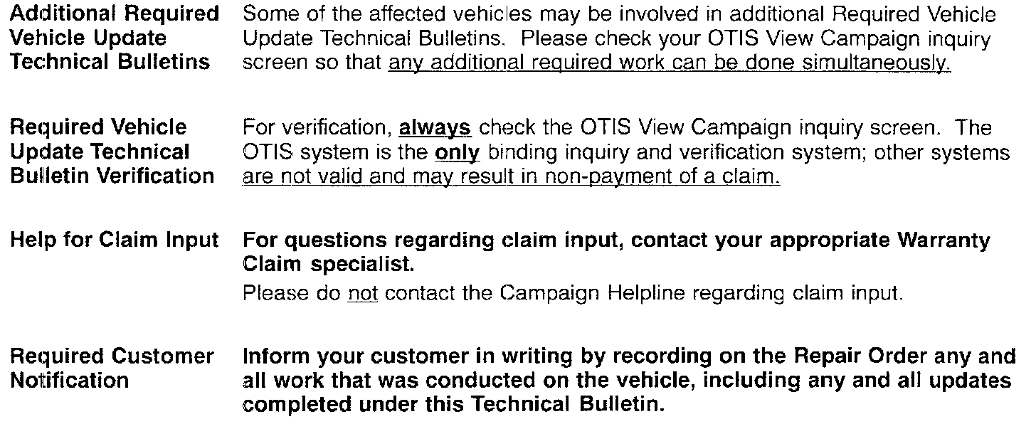 1. Procedure is valid only for vehicles that show the B2 code in the OTIS View Campaign inquiry screen on the day of repair shown.