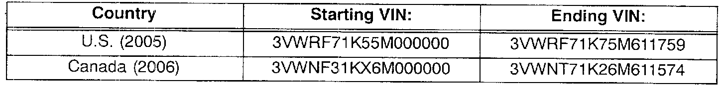 New Jetta U.S. (See Table) 2005