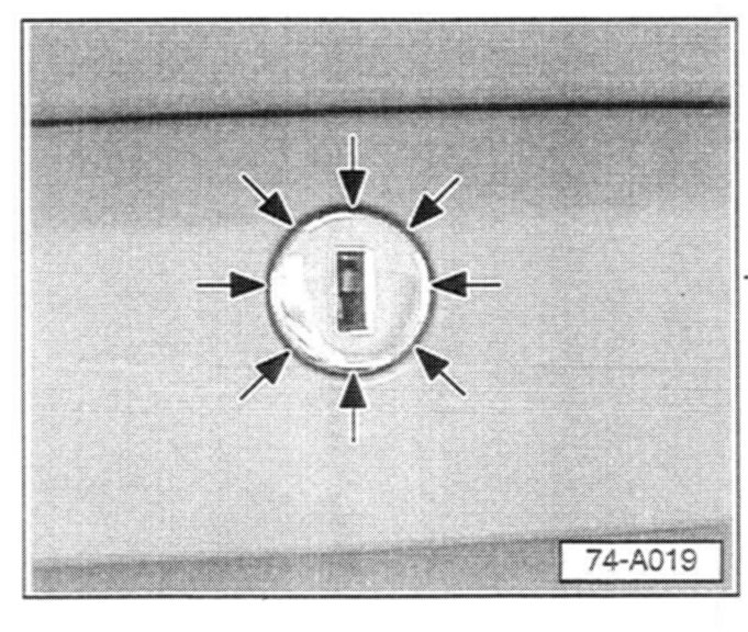 - Using a small applicator, pack lubricant into gap (arrows) between the lock cylinder and the opening in the armrest for the lock cylinder as shown.