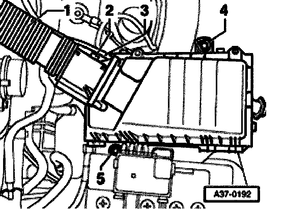 - Remove complete air cleaner housing by removing bolts -4- and -5-.