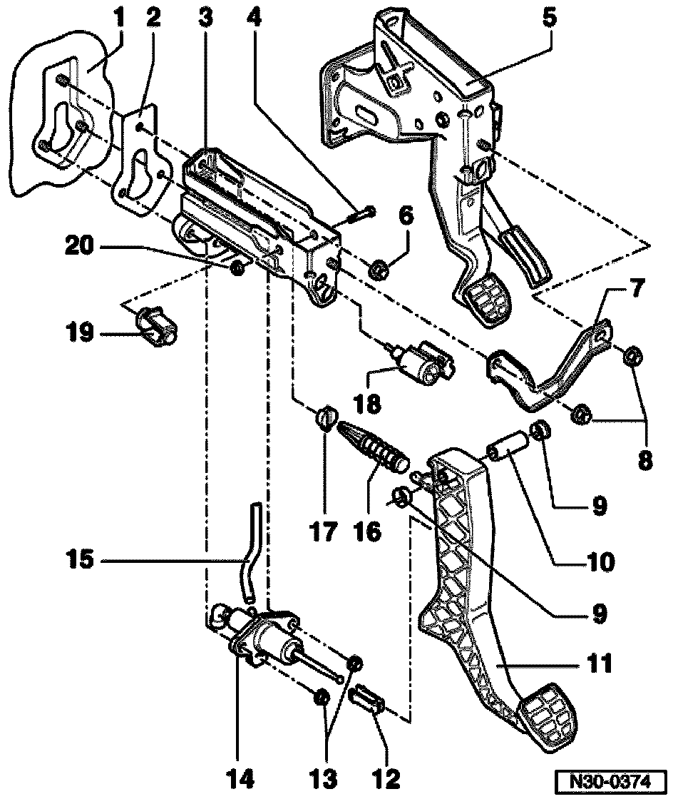 Pedal cluster assembly, overview, 02M, 5 and 6 Spd. M/T