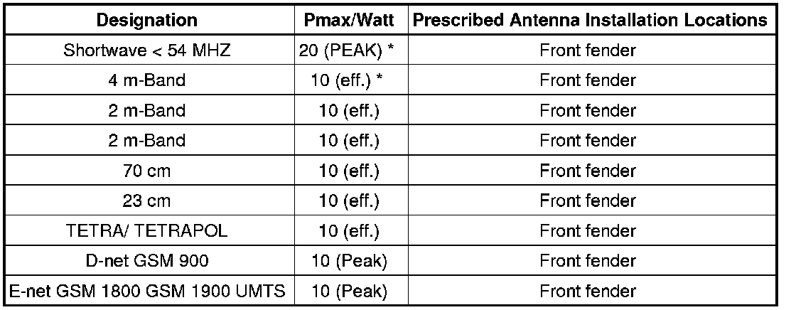 • Deviations from these guidelines (location of antenna, frequency, output) are only permitted in special isolated cases after a single-case test carried out by the EMV center of VW AG in Wolfsburg.