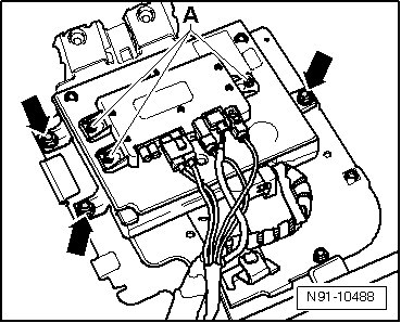 - If vehicle is equipped with an antenna selection control module, remove 3 screws - A - and lay aside control module with wires connected.