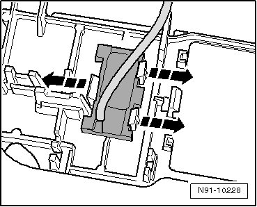 - Operate the three retaining hooks - arrows - in direction of arrow and remove microphone.