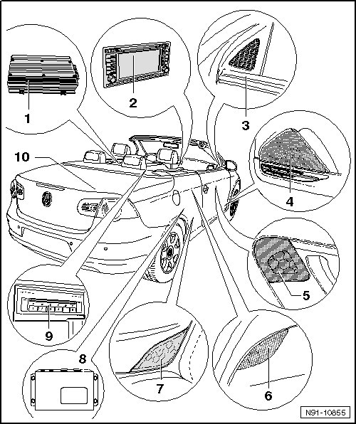 • For more information regarding the different speaker systems, refer to=> [ Speaker Systems ] Description and Operation.