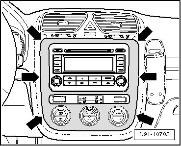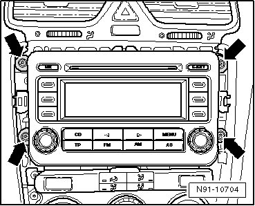 - Remove bolts - arrows - on radio navigation system.