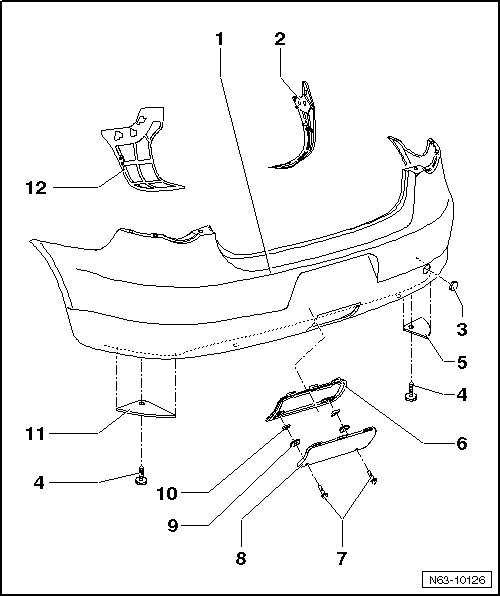 Removing and Installing, refer to => [ Rear Bumper Cover ] Rear Bumper Cover through 12.10