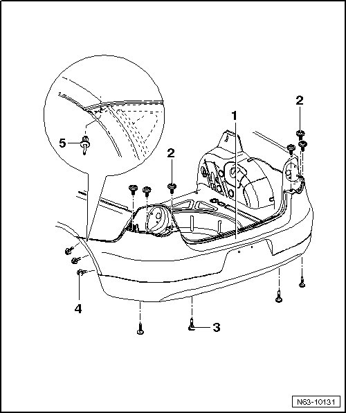 - Pry out expanding rivet - 5 - in area of left and right wheel housing liners using a screwdriver.