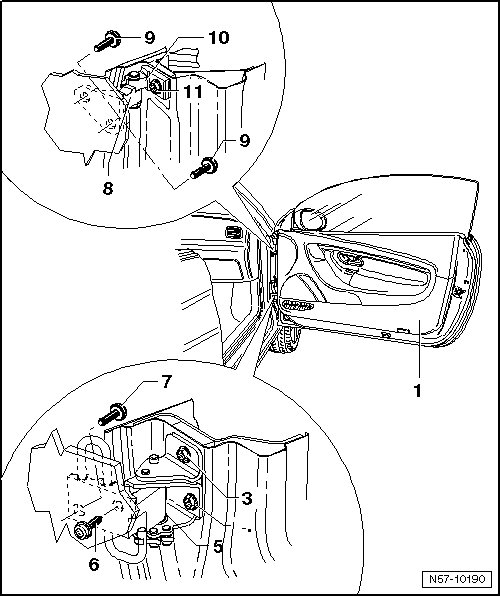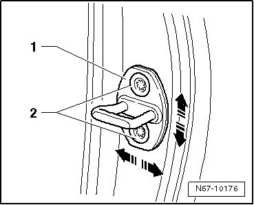 - Adjust door with lock bracket - 1 - so that door aligns with side panel when closed (wind noise).